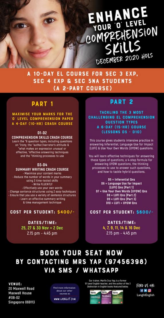 Watch out for our new schedule, or contact Mrs Yap to schedule the course for your child (minimum group size: 5 students)
