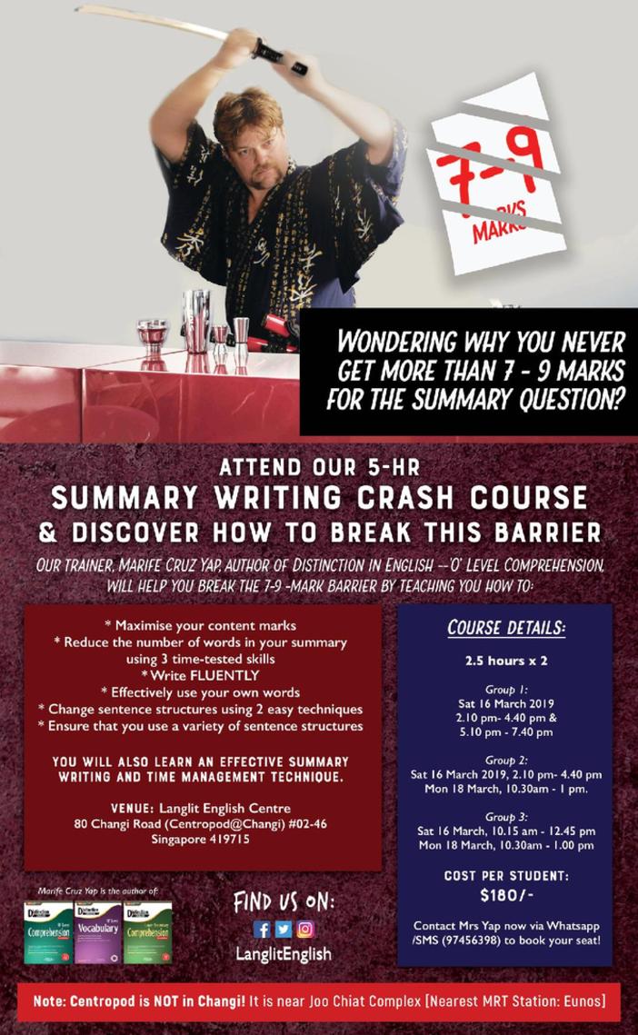 Here's our 2-day 'O' Level Summary Writing Course Brochure.